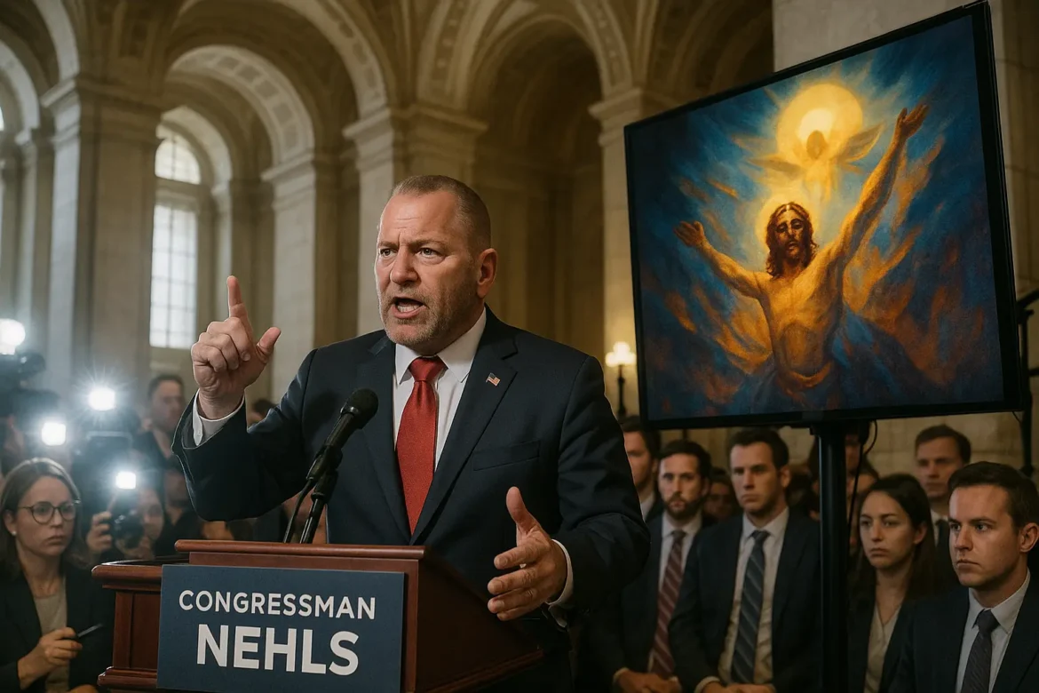 Capitol Hill was ablaze Thursday after Texas Congressman Troy Nehls stunned reporters by calling President Donald Trump ‘almost the second coming’ of Jesus Christ during a CNN interview. This bold statement followed days of media frenzy, as Trump shared-and then removed-a controversial AI-generated image on Truth Social. The image sparked a powder keg of religious debate, with Trump reportedly depicted as a radiant, Christ-like figure performing wonders, draped in white and a red sash, flanked by military imagery and soaring eagles.